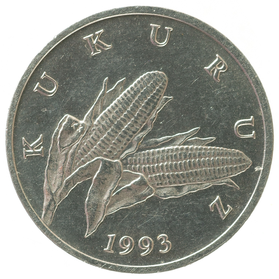 U središnjem dijelu prikaz dva kukuruzna klipa. Iznad prikaza, kružno uz rub, natpis "KUKURUZ" . Uz donji rub, u središnjem dijelu, godina kovanja.