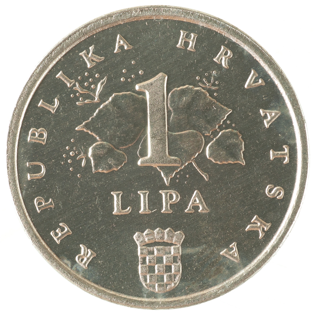 U središnjem dijelu nominala "1 LIPA", a u pozadini prikaz stilizirane grane lipe u cvatu. Kružno, uz rub, natpis "REPUBLIKA HRVATSKA". Uz donji rub prikaz grba Republike Hrvatske.