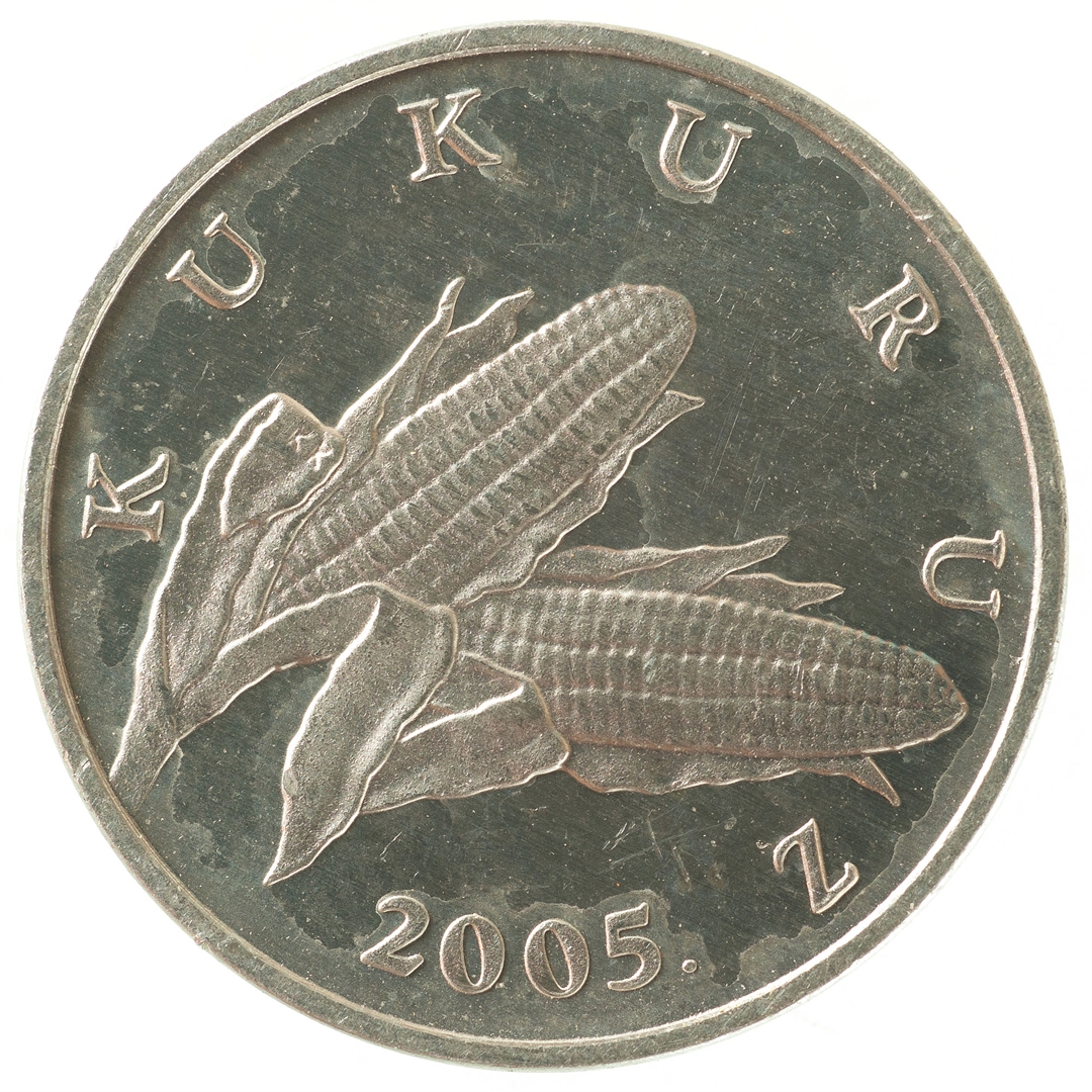 U središnjem dijelu prikaz dva kukuruzna klipa. Iznad prikaza, kružno uz rub, natpis "KUKURUZ" . Uz donji rub, u središnjem dijelu, godina kovanja.