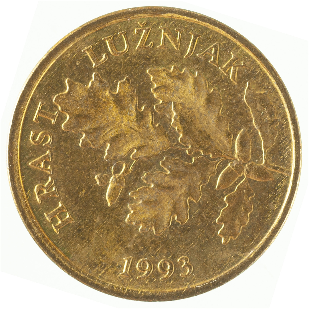 U središnjem dijelu prikaz stilizirane grane hrasta lužnjaka s plodovima. Iznad prikaza, kružno uz rub, natpis "HRAST LUŽNJAK" . Uz donji rub, u središnjem dijelu, godina kovanja.