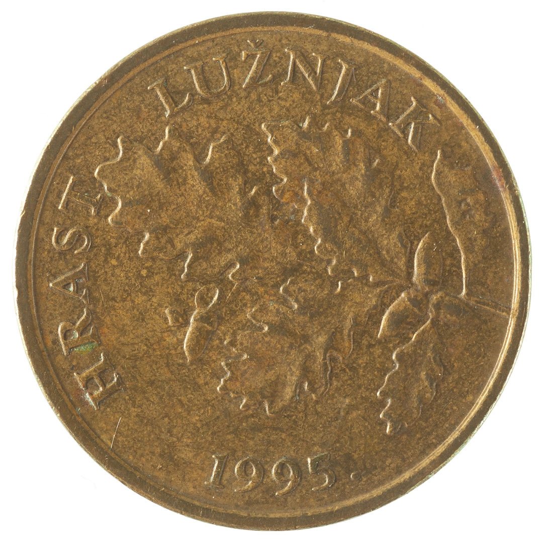 U središnjem dijelu prikaz stilizirane grane hrasta lužnjaka s plodovima. Iznad prikaza, kružno uz rub, natpis "HRAST LUŽNJAK" . Uz donji rub, u središnjem dijelu, godina kovanja.