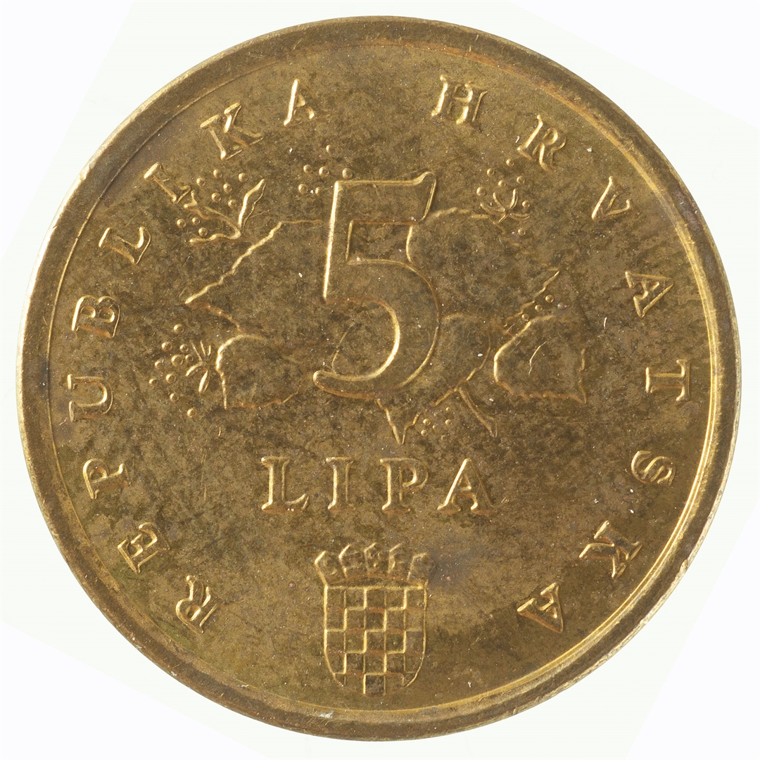 U središnjem dijelu nominala "5 LIPA", a u pozadini prikaz stilizirane grane lipe u cvatu. Kružno, uz rub, natpis "REPUBLIKA HRVATSKA". Uz donji rub prikaz grba Republike Hrvatske.