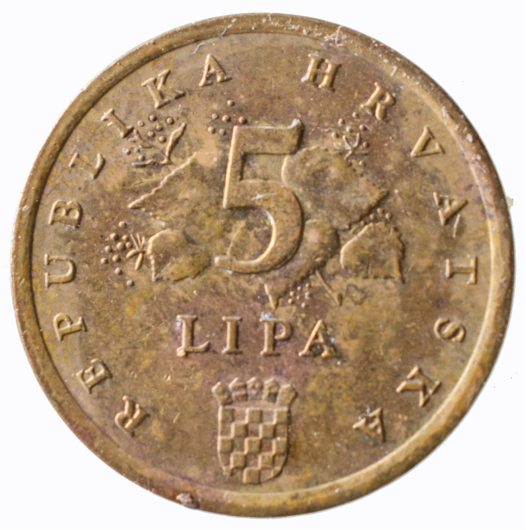 U središnjem dijelu nominala "5 LIPA", a u pozadini prikaz stilizirane grane lipe u cvatu. Kružno, uz rub, natpis "REPUBLIKA HRVATSKA". Uz donji rub prikaz grba Republike Hrvatske.
