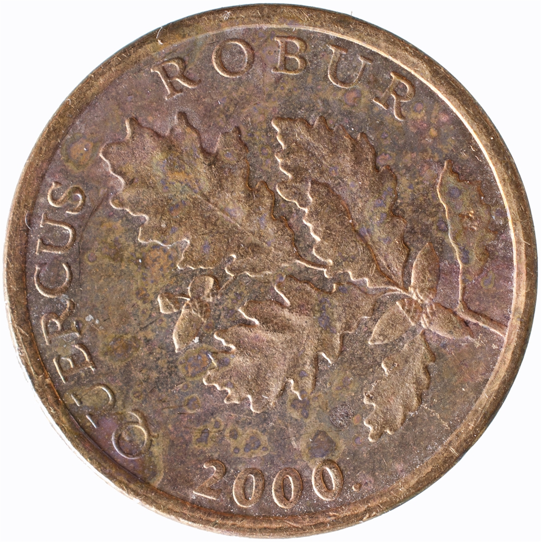 U središnjem dijelu prikaz stilizirane grane hrasta lužnjaka s plodovima. Iznad prikaza, kružno uz rub, natpis "HRAST LUŽNJAK" . Uz donji rub, u središnjem dijelu, godina kovanja.