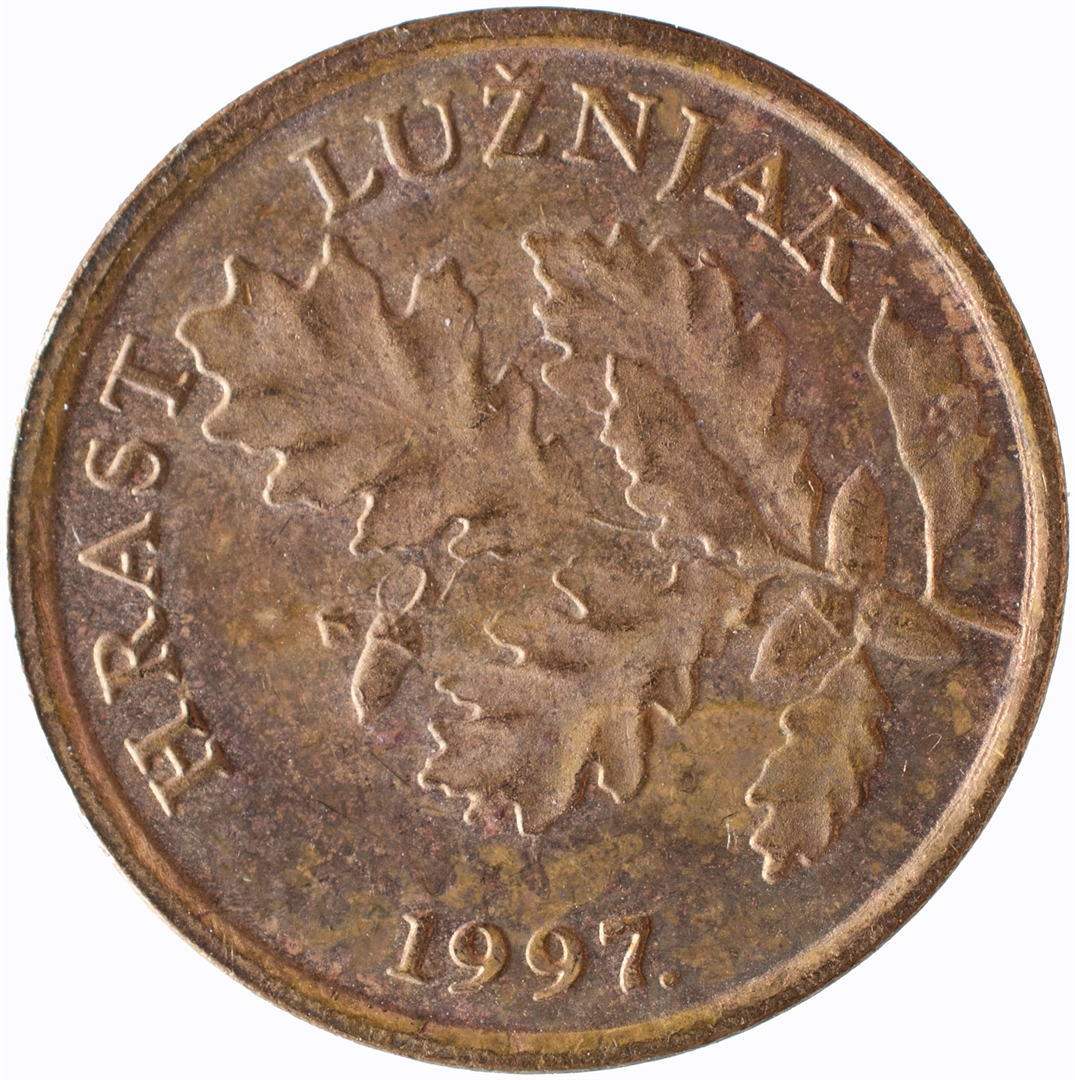 U središnjem dijelu prikaz stilizirane grane hrasta lužnjaka s plodovima. Iznad prikaza, kružno uz rub, natpis "HRAST LUŽNJAK" . Uz donji rub, u središnjem dijelu, godina kovanja.