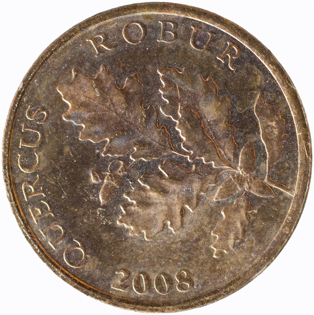 U središnjem dijelu prikaz stilizirane grane hrasta lužnjaka s plodovima. Iznad prikaza, kružno uz rub, natpis "HRAST LUŽNJAK" . Uz donji rub, u središnjem dijelu, godina kovanja.