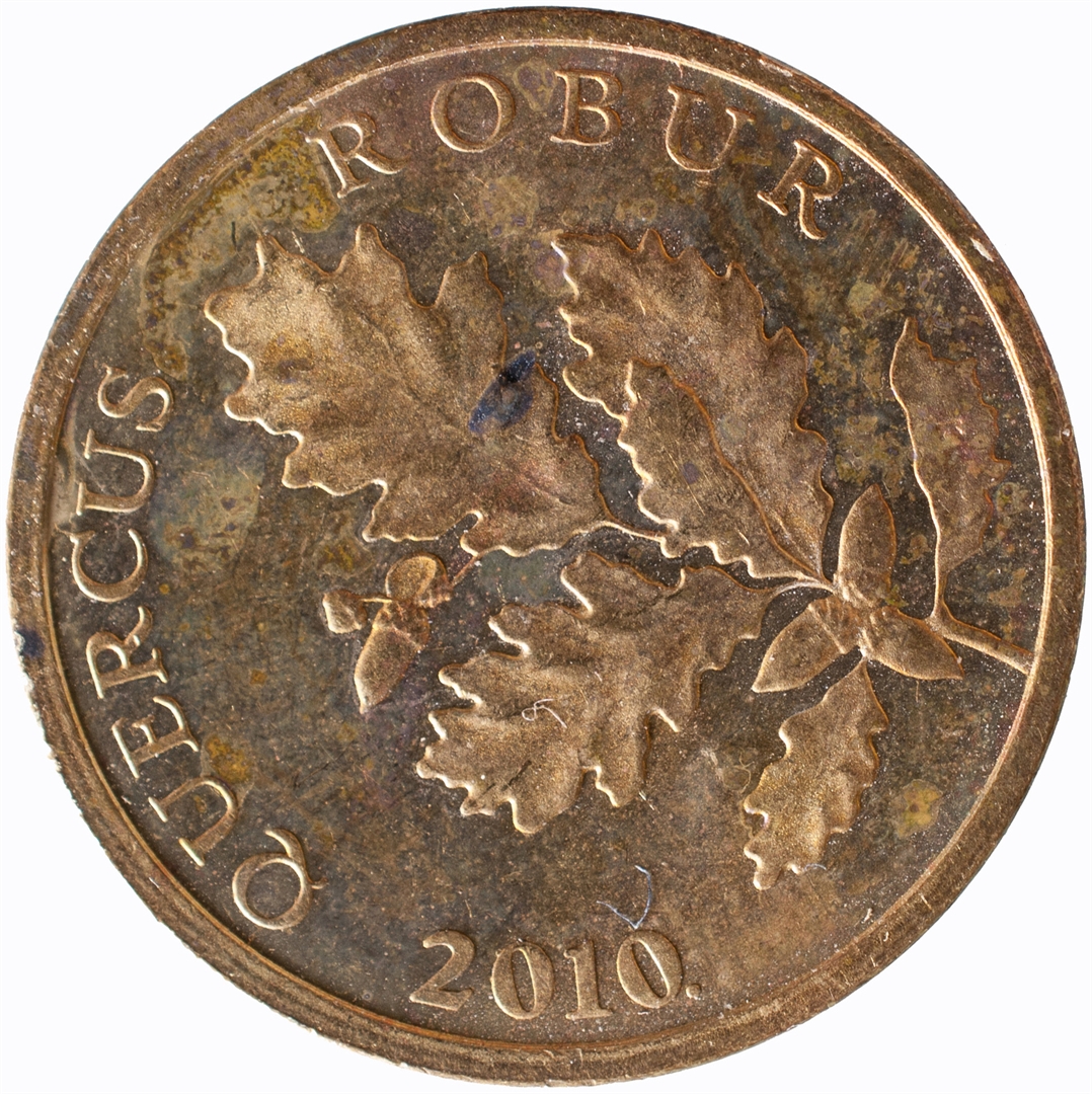 U središnjem dijelu prikaz stilizirane grane hrasta lužnjaka s plodovima. Iznad prikaza, kružno uz rub, natpis "HRAST LUŽNJAK" . Uz donji rub, u središnjem dijelu, godina kovanja.