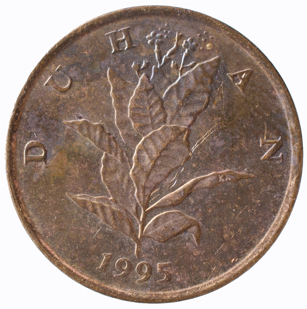 U središnjem dijelu stilizirana stabljika duhana u cvatu. Iznad prikaza, kružno uz rub, natpis "DUHAN". Uz donji rub, u središnjem dijelu, godina kovanja.