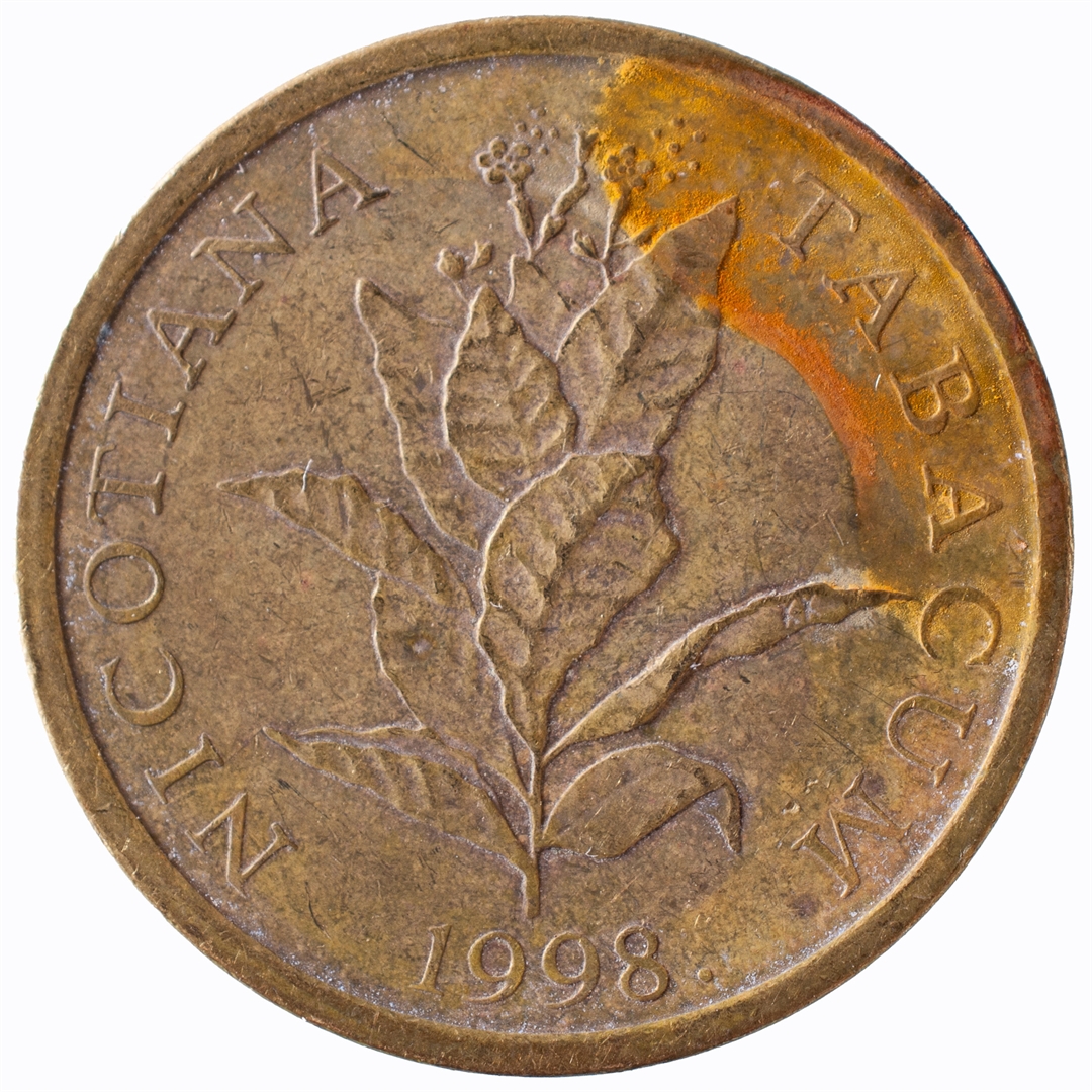 U središnjem dijelu stilizirana stabljika duhana u cvatu. Iznad prikaza, kružno uz rub, natpis "DUHAN". Uz donji rub, u središnjem dijelu, godina kovanja.