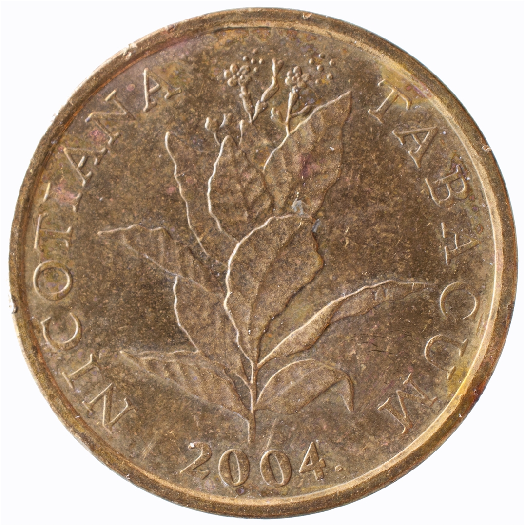 U središnjem dijelu stilizirana stabljika duhana u cvatu. Iznad prikaza, kružno uz rub, natpis "DUHAN". Uz donji rub, u središnjem dijelu, godina kovanja.