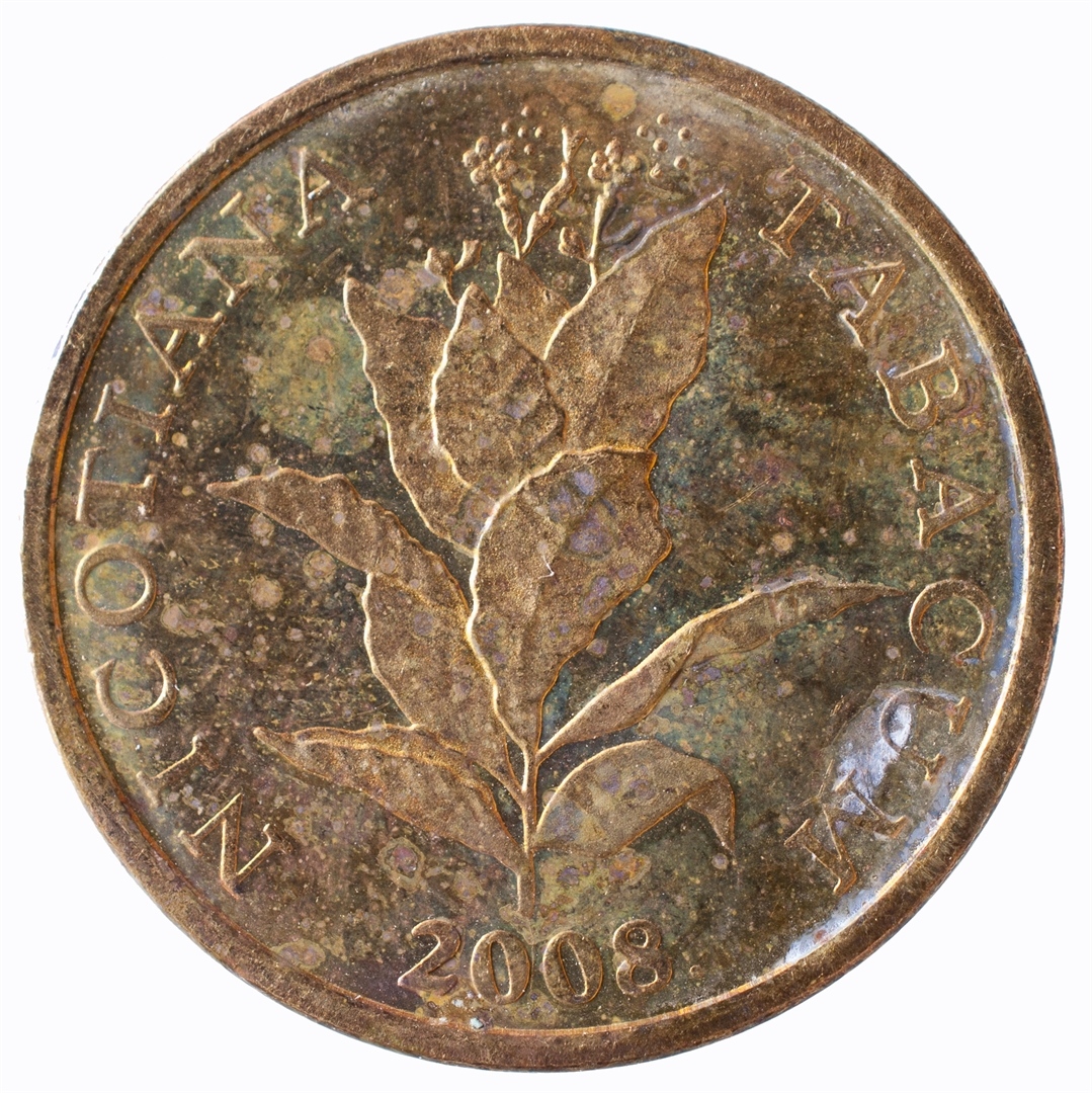 U središnjem dijelu stilizirana stabljika duhana u cvatu. Iznad prikaza, kružno uz rub, natpis "DUHAN". Uz donji rub, u središnjem dijelu, godina kovanja.