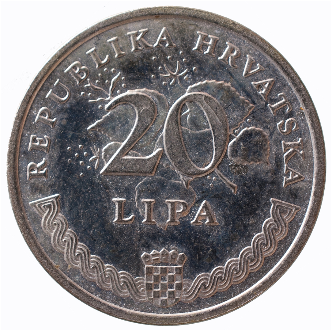 U središnjem dijelu nominala "20 LIPA", a u pozadini prikaz stilizirane grane lipe u cvatu. U gornjem polukrugu, uz rub, natpis "REPUBLIKA HRVATSKA". Uz donji rub, u središnjem dijelu, prikaz grba Republike Hrvatske od kojeg je lijevo i desno prikaz pleterne ornamentike.