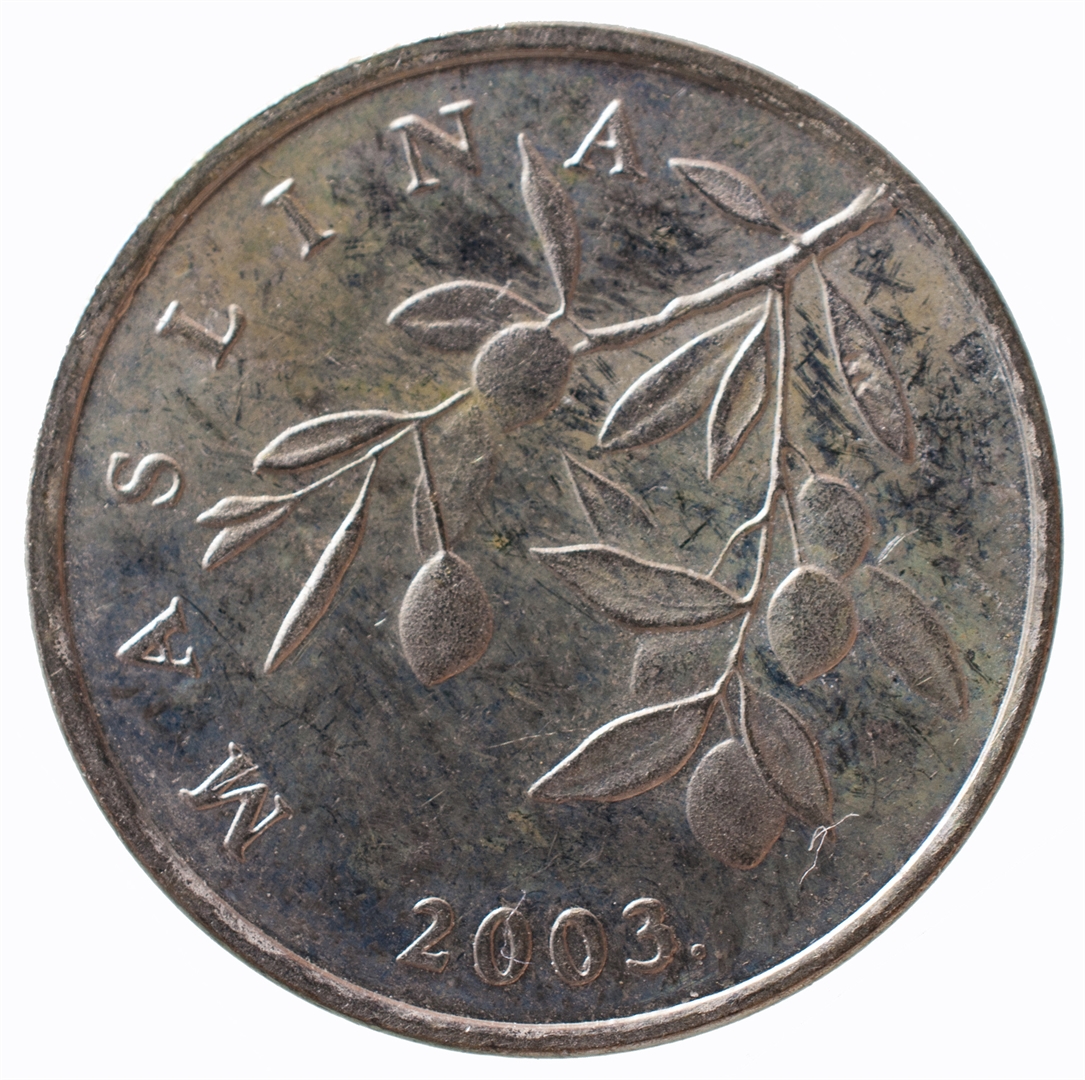 U središnjem dijelu stilizirana grana masline s plodovima. Polukružno, uz lijevi rub, natpis "MASLINA". Uz donji rub, u središnjem dijelu, godina kovanja.