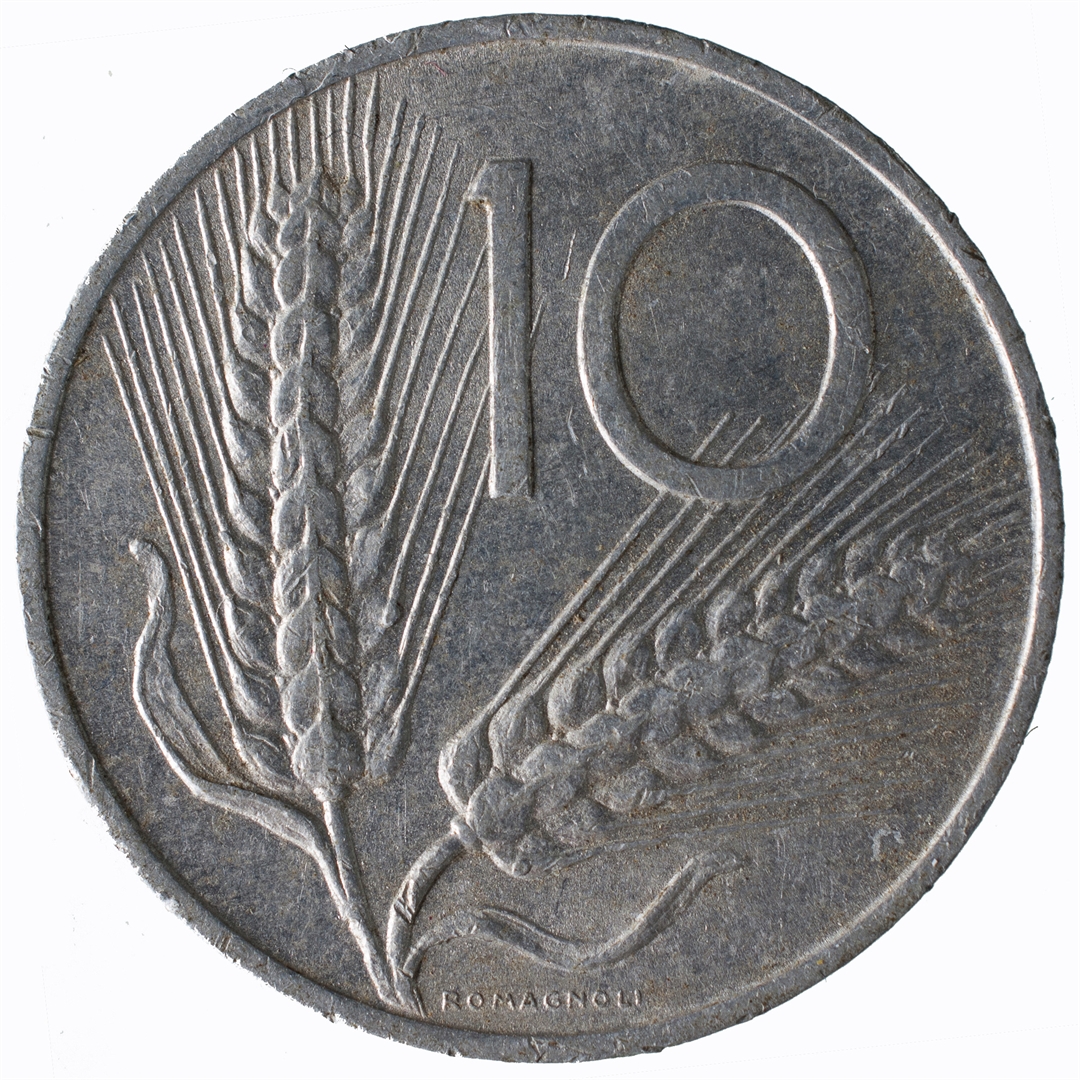 Centralni dio zauzima prikaz dva klasa pšenice iznad kojeg se nalazi nominala. Na dnu uz rub tekst ROMAGNOLI.