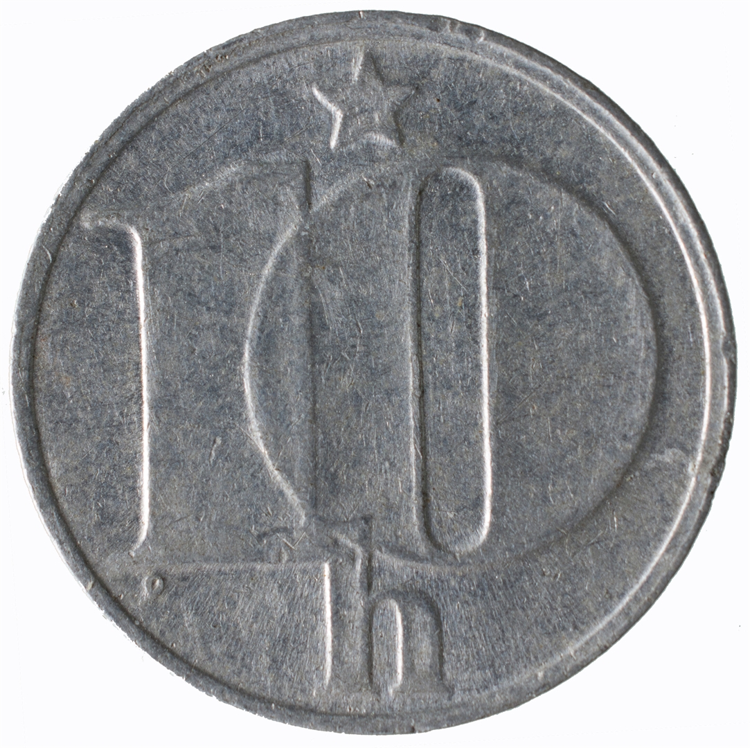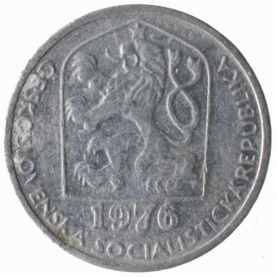 Središnji dio zauzima državni grb ispod kojeg se nalazi godina kovanja. Kružno uz rub nalazi se natpis ČESKOSLOVENSKÁ SOCIALISTICKÁ REPUBLIKA.