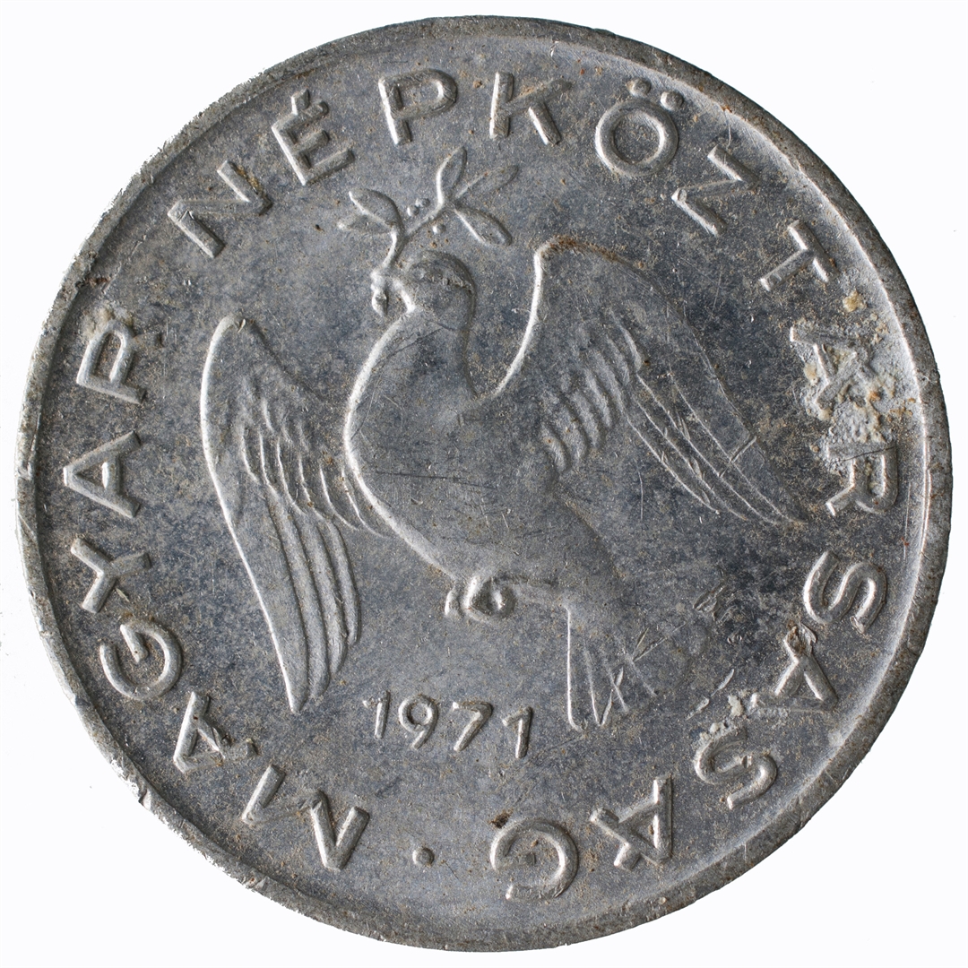 U centralnom djelu prikaz golubice koja u kljunu nosi maslinovu grančicu, a ispod nje godina kovanja. Uz rub kružni natpis MAGYAR NÉPKÖZTÁRSASÁG ·