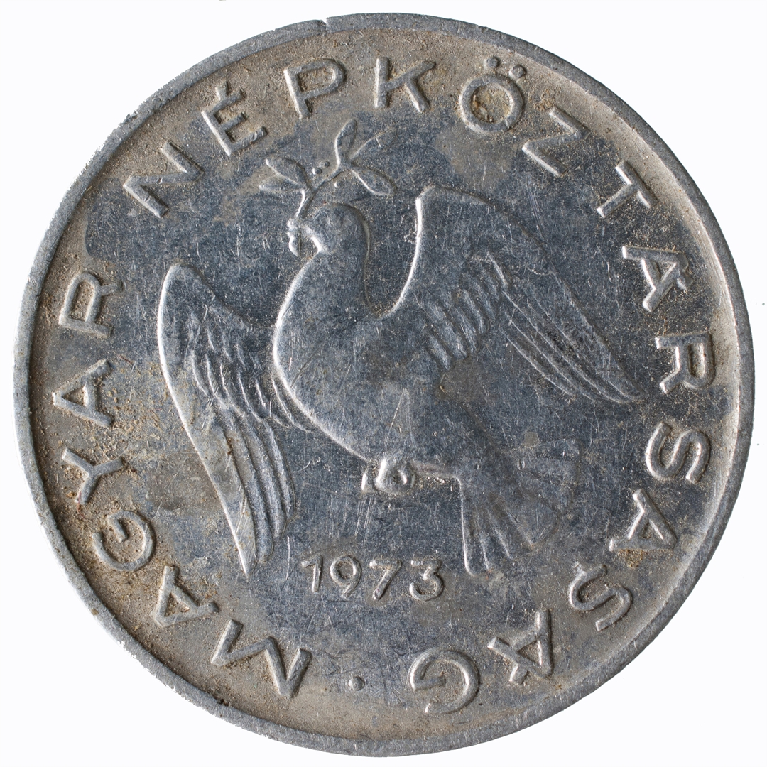 U centralnom djelu prikaz golubice koja u kljunu nosi maslinovu grančicu, a ispod nje godina kovanja. Uz rub kružni natpis MAGYAR NÉPKÖZTÁRSASÁG ·