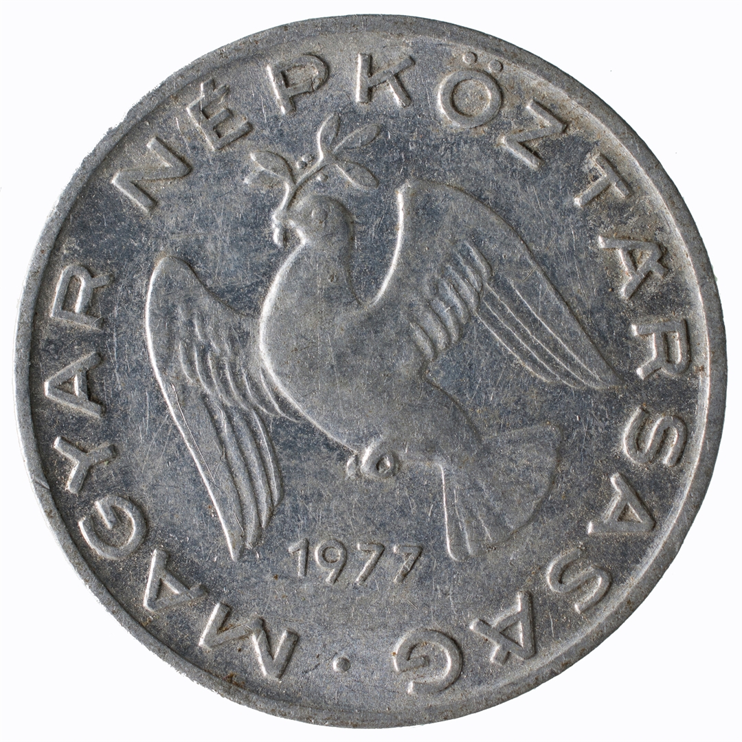 U centralnom djelu prikaz golubice koja u kljunu nosi maslinovu grančicu, a ispod nje godina kovanja. Uz rub kružni natpis MAGYAR NÉPKÖZTÁRSASÁG ·