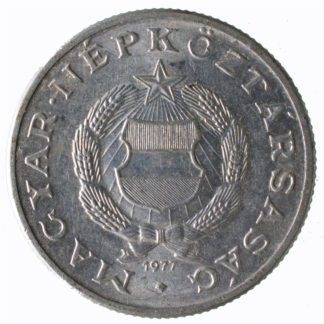 Središnji dio zauzima grb Narodne Republike Mađarske ispod kojeg se nalazi godina kovanja. Uz rub nalazi se natpis MAGYAR · NÉPKÖZTÁRSASÁG ·