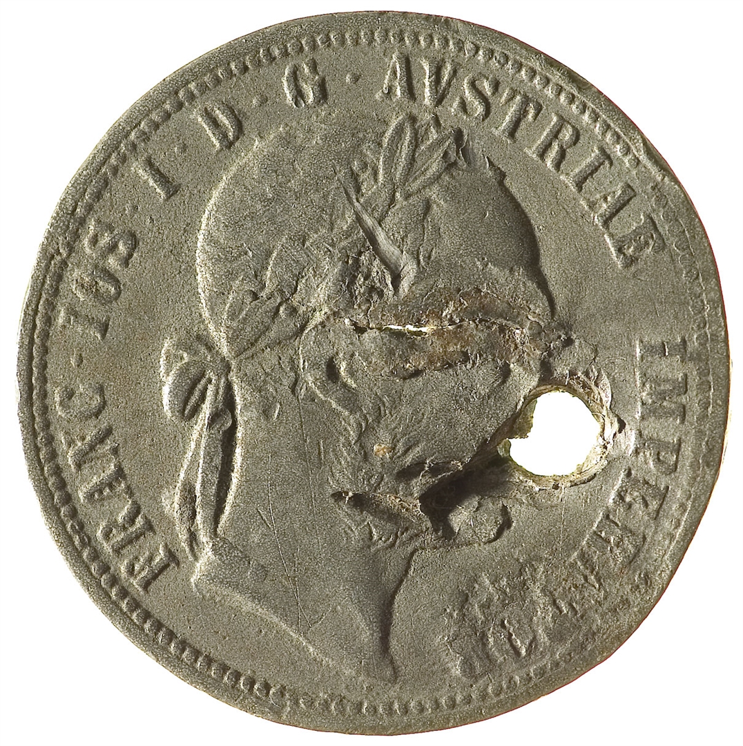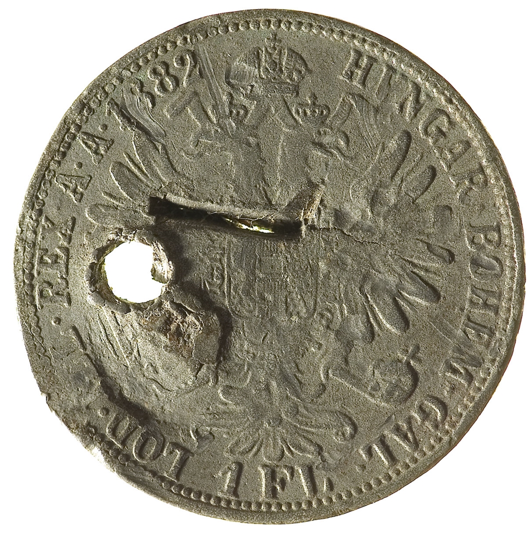 Avers: ovjenčani portret cara Franje Josipa I s pogledom udesno; uz rub teče natpis: FRANC·IOS·I·D·G·AUSTRIAE IMPERATOR Revers: okrunjeni dvoglavi carski orao; uz rub teče natpis: HUNGAR·BOHEM·GAL·(1 FL) LOD·ILL·REX A·A·1882 Prikazi na aversu i reversu su oštećeni bušenjem kovanice.