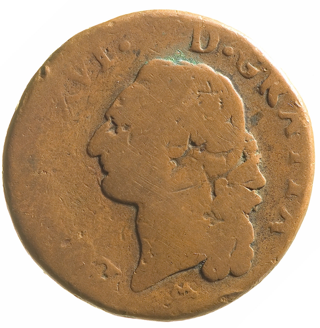 Avers: portret kralja Luja XVI okrenut ulijevo; ispod portreta je oznaka kovnice: M; uz rub teče izlizan natpis: L(UDOV)•XVI•D•GRATIA Revers: okrunjen grb Francuske, iznad kojeg je godina 1784 podijeljena u dva dijela; uz rub teče natpis: FRANCIAE ET NNAVARRAE REX