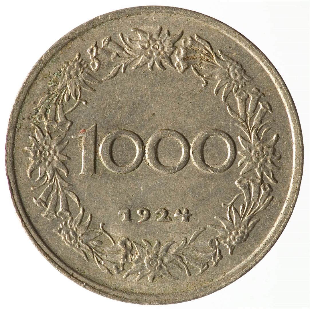Avers: ženska personifikacija regje Tirol okrenuta udesno, sa kapom na glavi, u pozadini su plaine; ispod je natpis: H•ZITA; uz rub teče natpis: REPUBLIK OESTERREICH Revers: vrijednost 1000 i ispod godina 1924, unutar vijenca od cvijeća lincure i runolista