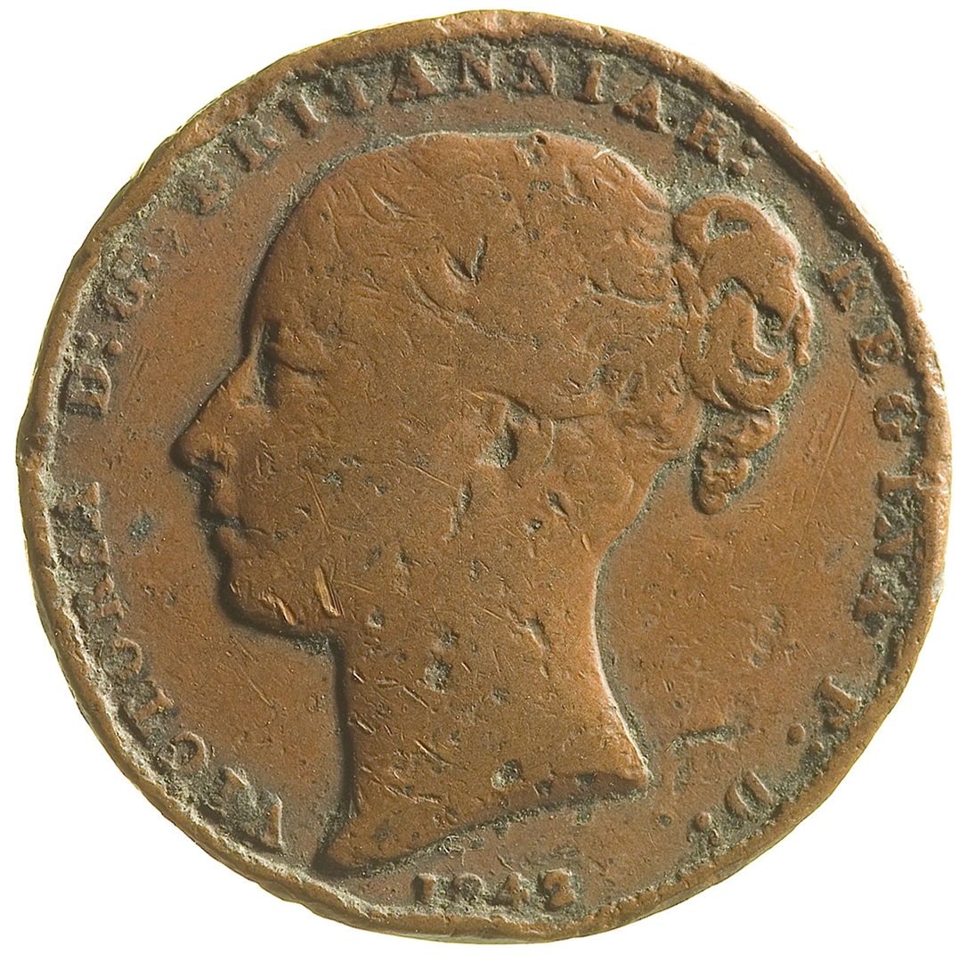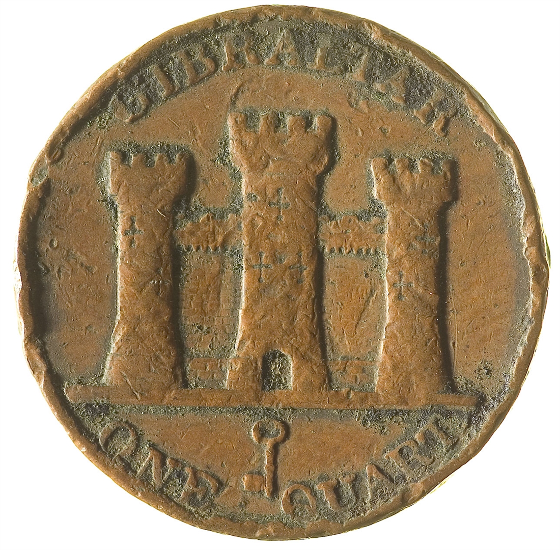 Avers: portret kraljice Viktorije, profil ulijevo; ispod je godina 1842; uz rub teče natpis: VICTORIA D:G: BRITANNIAR: REGINA F:D: Revers: dvorac s tri kule; iznad je natpis GIBRALTTAR, ispod prikaza je navedena vrijednost ONE QUART, a između riječi je prikaz okomito položenog ključa