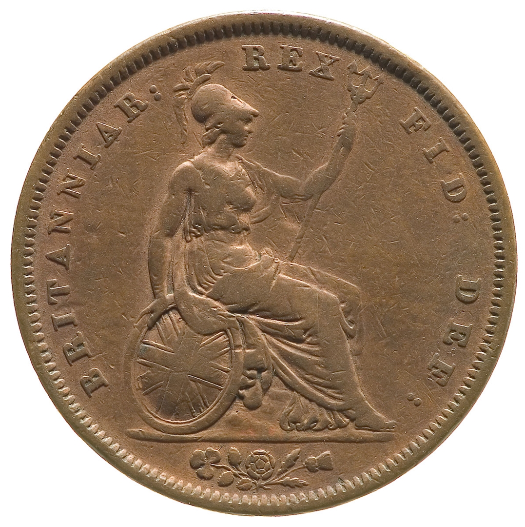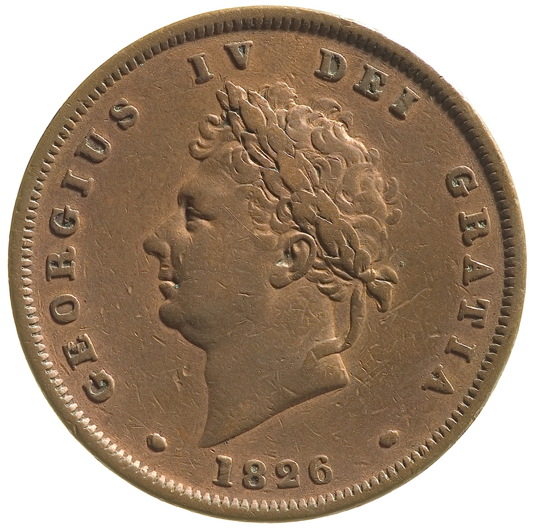 Avers: portret kralja Karla IV ovjenčan lovorovim vijencem; uz rub teče natpis: GEORGIUS IV DEI GRATIA; ispod je godina 1826. Revers: personifikacija Britanije u sjedećem položaju okrenuta udesno, s lavom kraj nogu, truzopcem u lijevoj ruci, štitom za zastavom Unije i maslinovom grančicom u desnoj ruci; ispod nje nacionalni cvjetni amblem u egzergu, a uz rub teče natpis: BRITANNIAR: REX: FID: DEF: