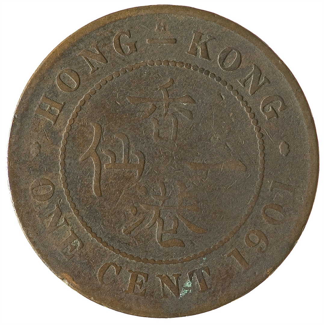 Avers: poprsje okrunjene kraljice Viktorije okrenuto ulijevo; uz rub teče natpis: VICTORIA QUEEN Rever: u središnjem polju obrubljenom perlama je kineska vrijednost kovanice; iznad, uz rub teče natpis HONG–KONG, a iznad crte u natpisu je oznaka kovnice; ispod središnjeg polja je vrijednost: ONE CENT i desno godina 1901.