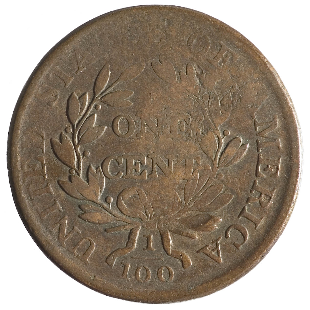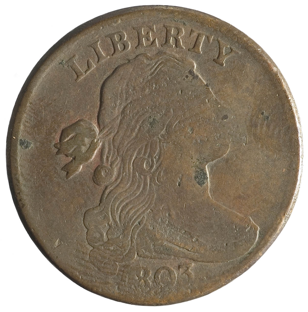 Avers: drapirano poprsje personifikacije Slobode okrenuto udesno; iznad, uz rub teče natpis: LIBERTY, a ispod je godina 1803 Revers: denominacija ONE CENT unutar vijenca i denominacijom ponovno navedenom u obliku razlomka ispod središnjeg polja; uz rub teče natpis: UNITED STATES OF AMERICA