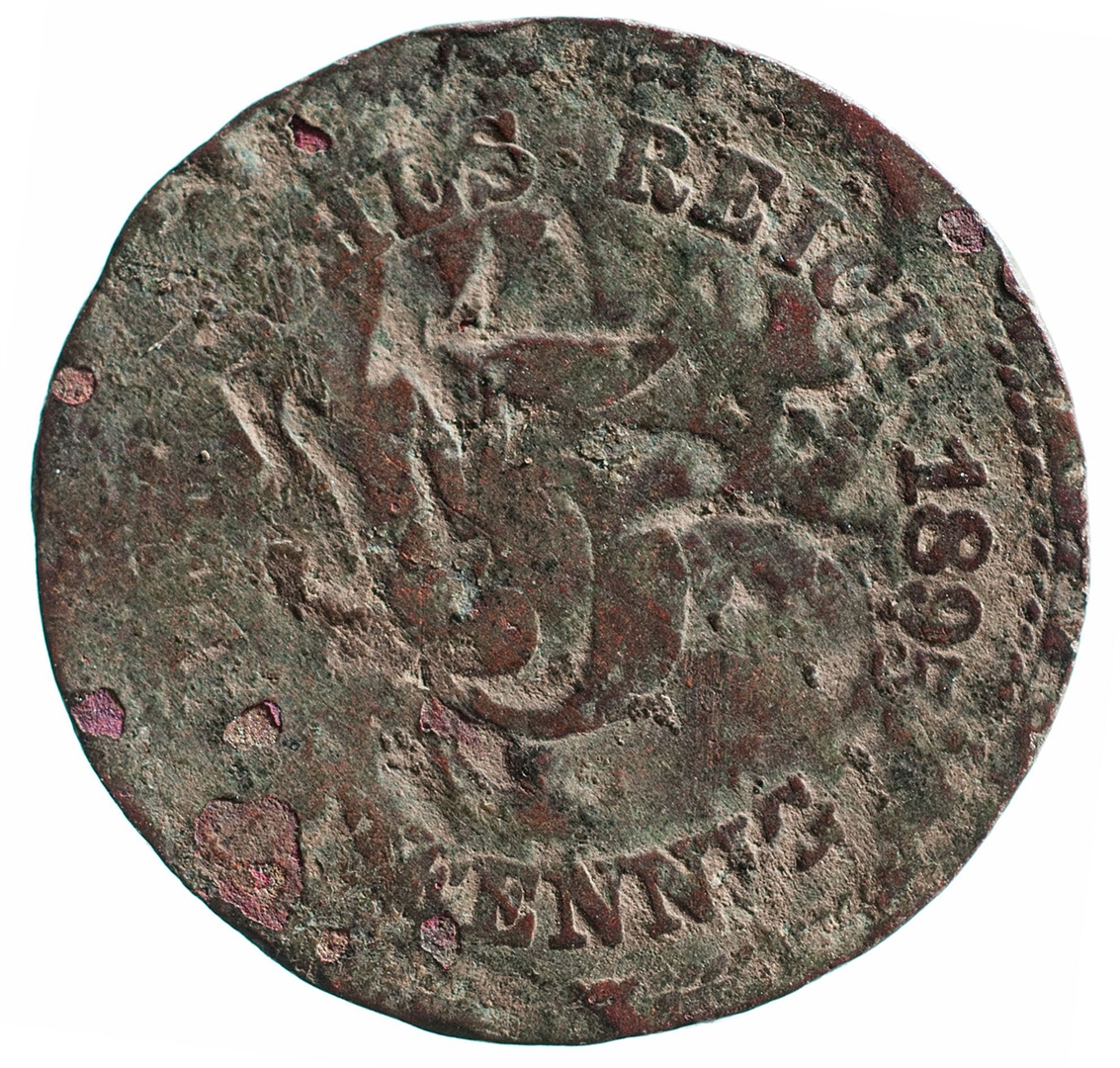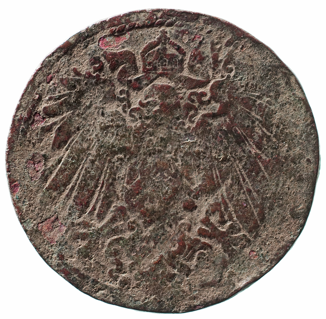 Avers: carski orao sa malim štitom; oznaka kovnice ispod nije čitljiva Revers: u središtu je velika nominala; uz rub teče natpis: DEUTSCHES REICH 1895 • PFENNIG •