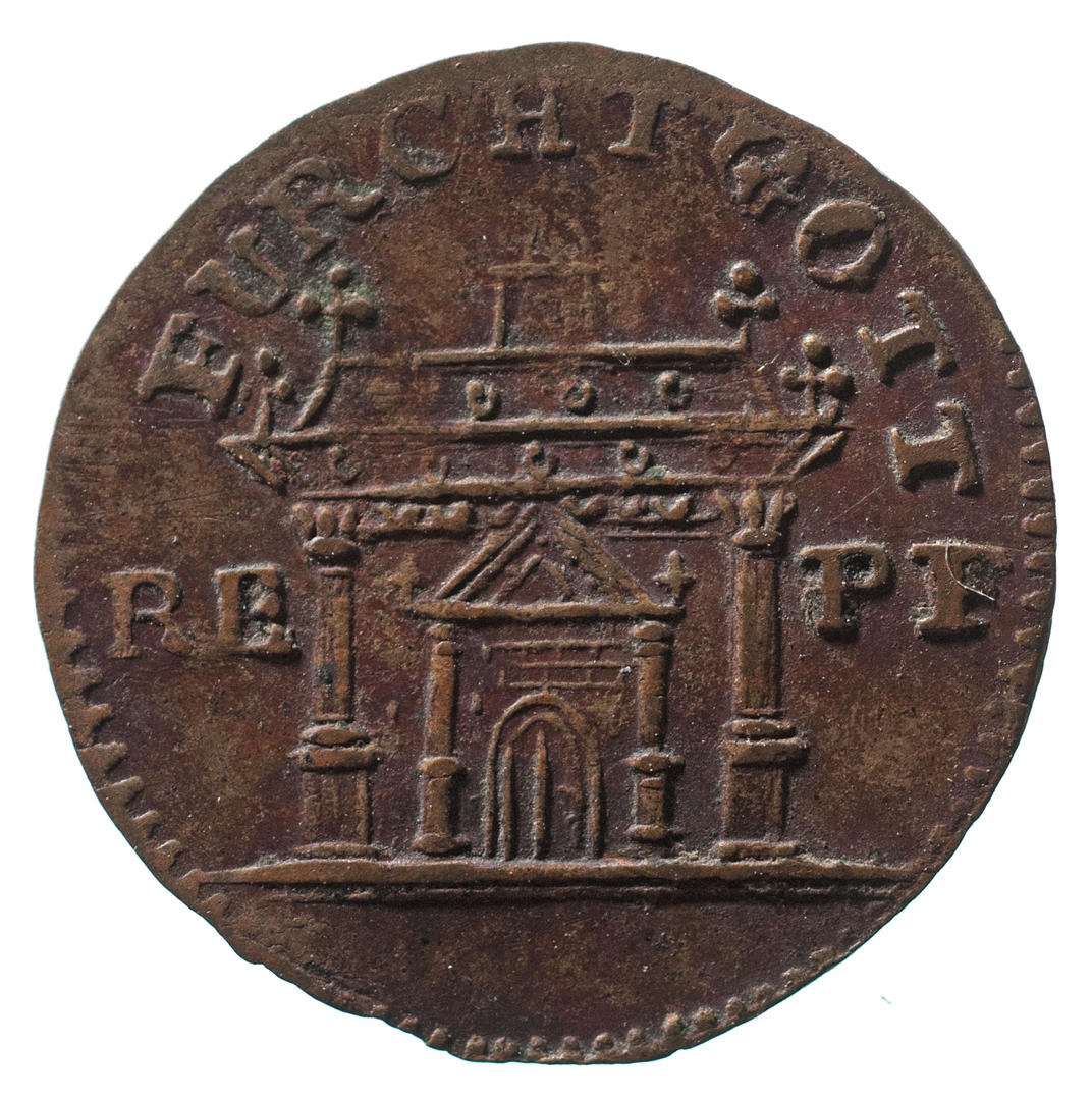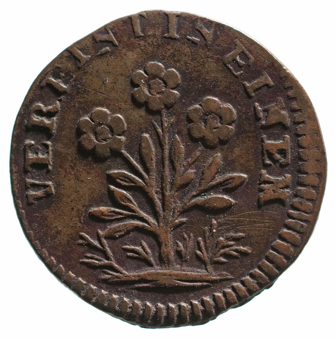 Avers: prikaz gradskih vrata; s bočnih strana prikaza skraćenica: RE - PF Revers: tri cvijeta posađena u zemlju; uz gornju polovicu kovanice teče natpis: VERFINT IN EINEM
