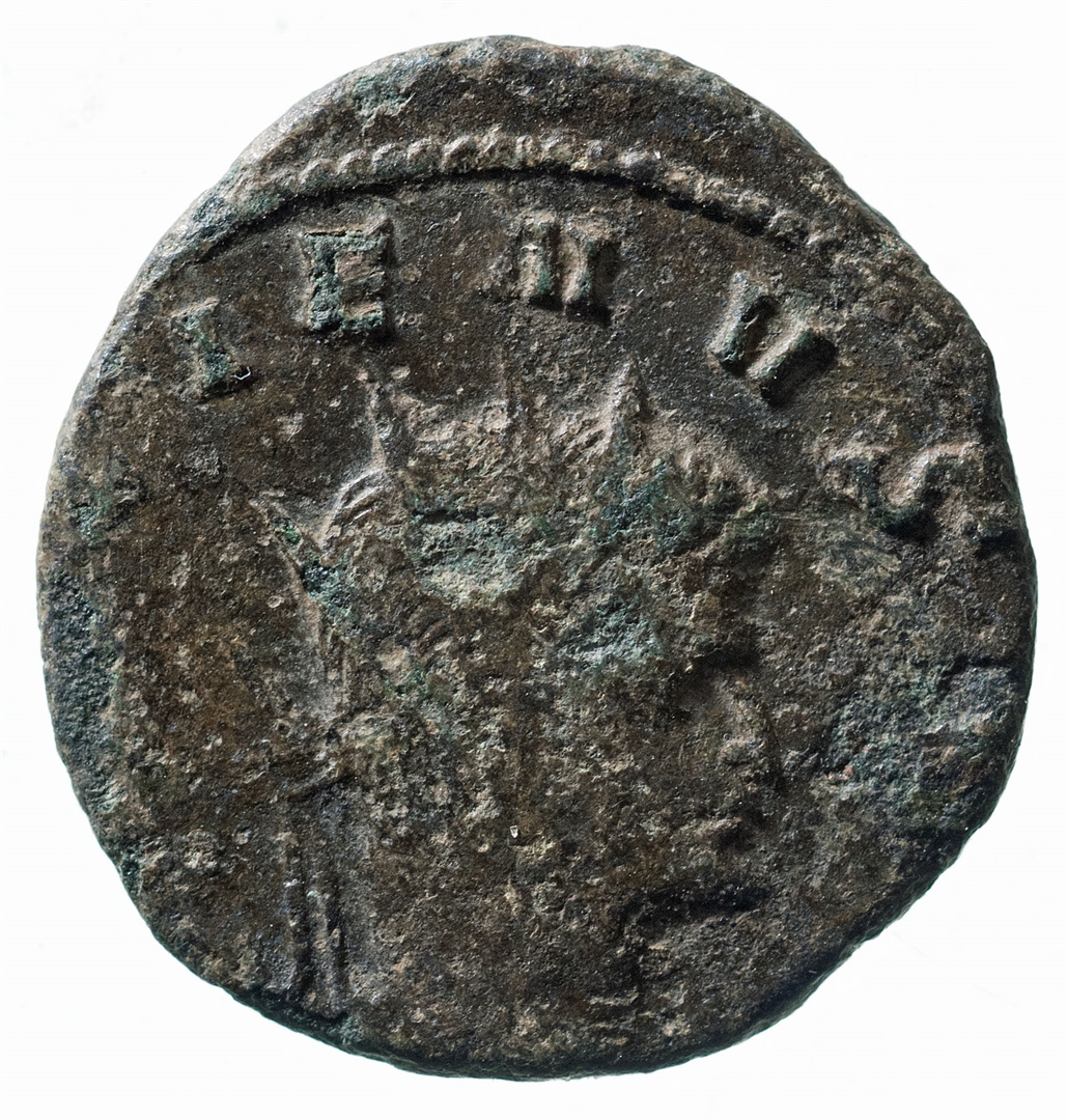 Avers: portret cara sa zrakastom krunom okrenut udesno; uz rub čitljiv dio natpisa: (GALL) IENVS Revers: Libertas (personifikacija slobode) u drapiranoj odjeći i stojećem položaju, u lijevoj ruci drži kapu (?), a lijevom pridržava žezlo; desno od prikaza je oznaka kovnice: XI; uz rub čitljiv dio natpisa: (...) ERTA (...)