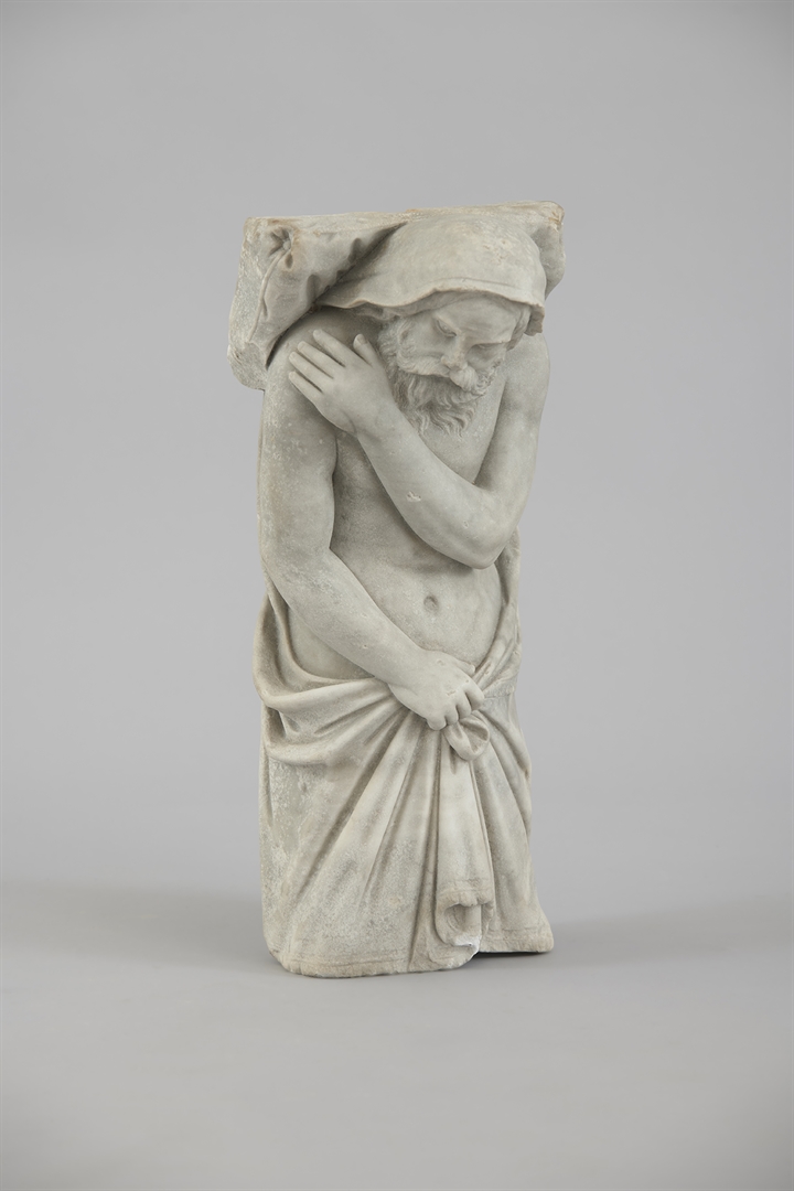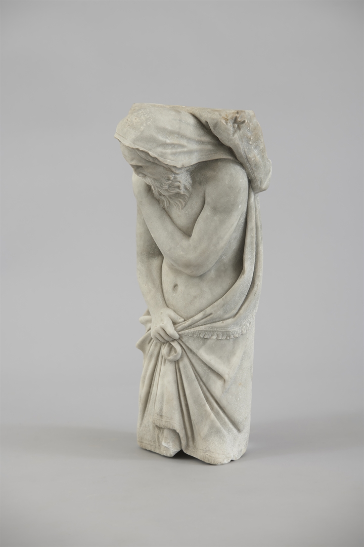 Sličan skulpturi pod MRR-1204. Samo je glava malo više nagnuta. Lijeva ruka na desno rame, a desna malo spuštena napred pridržava plašt. (Inventarna knjiga 1-3, 3. tom)