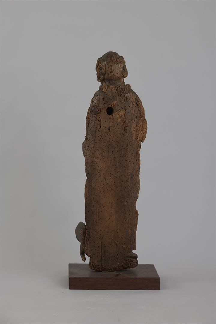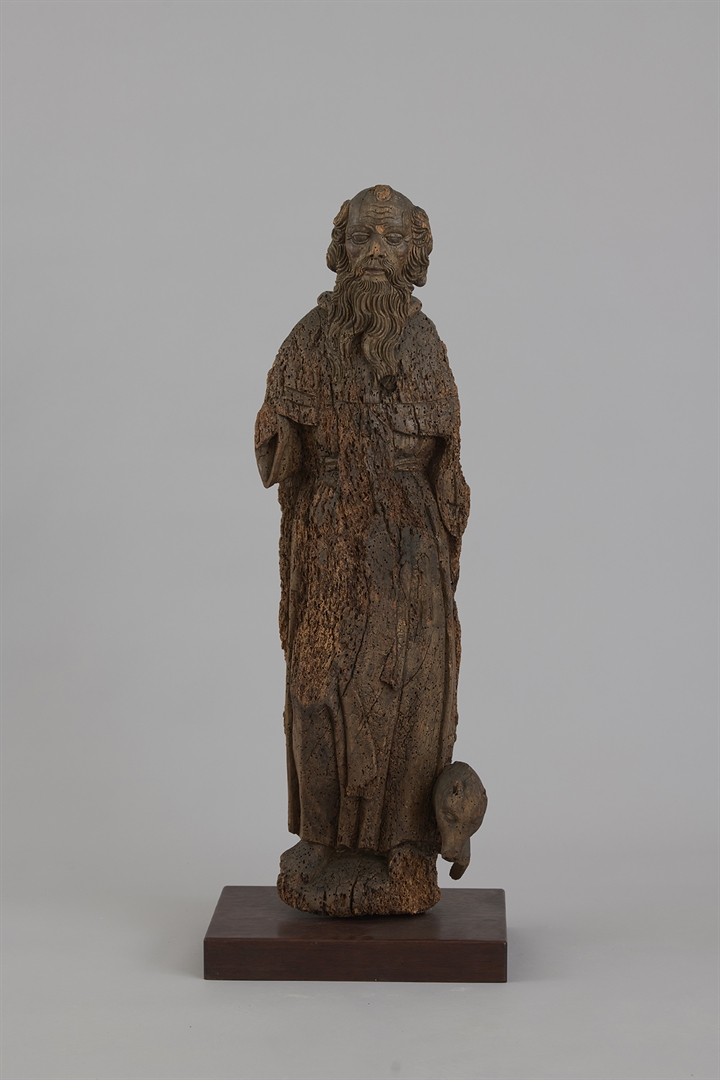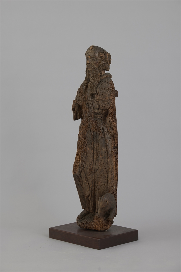 Sv. Anton Opat. Drvena figura sa valovitom kosom, bradom i brkovima. Haljina do poda. Iz haljine vire bose noge. Na desnoj nozi fale dva prsta. Ramena pokrivena plaštom. Bez ruku. Pri nogu nalazi se svinja. (Inventarna knjiga 1-3, 1. tom)